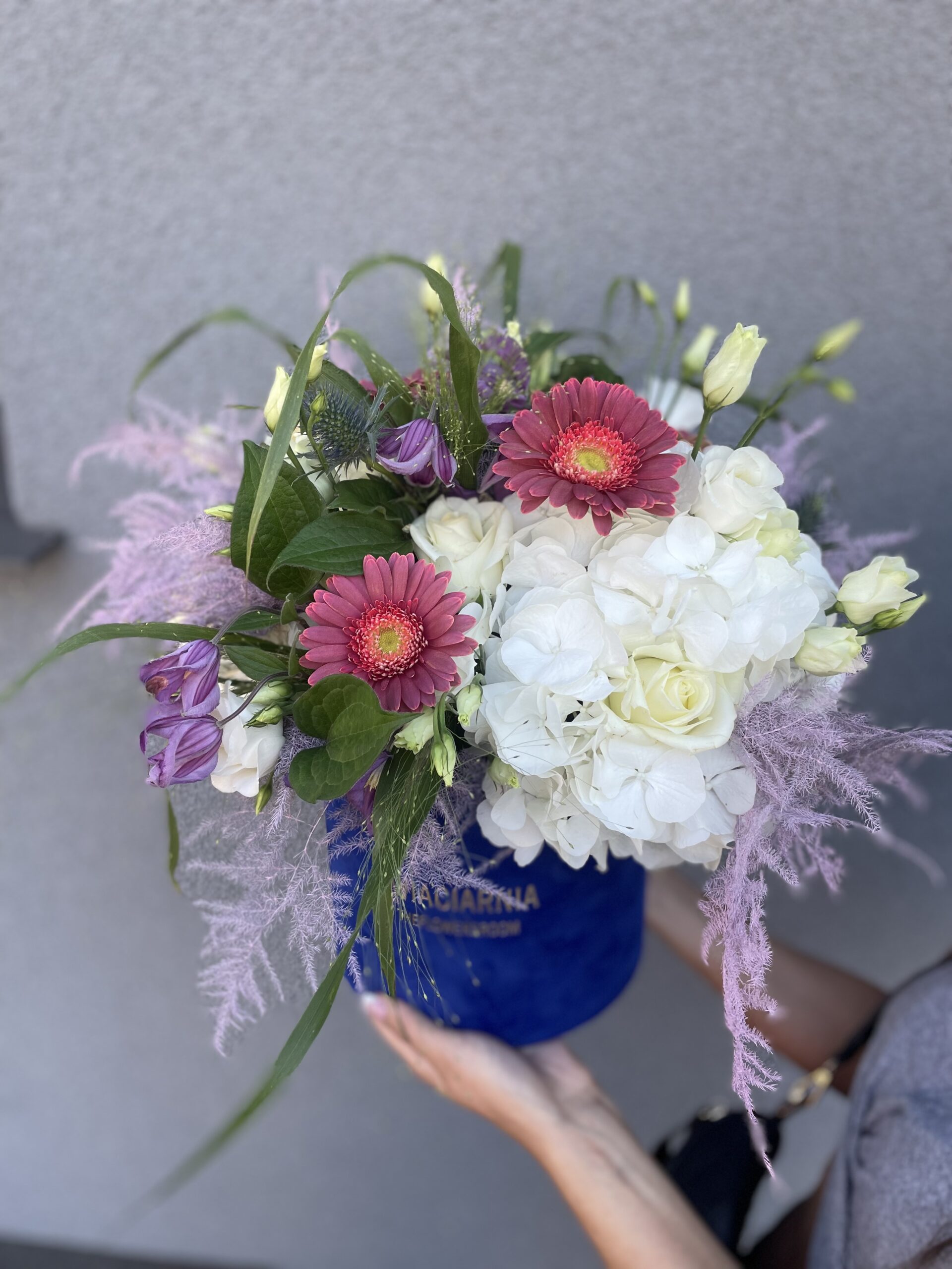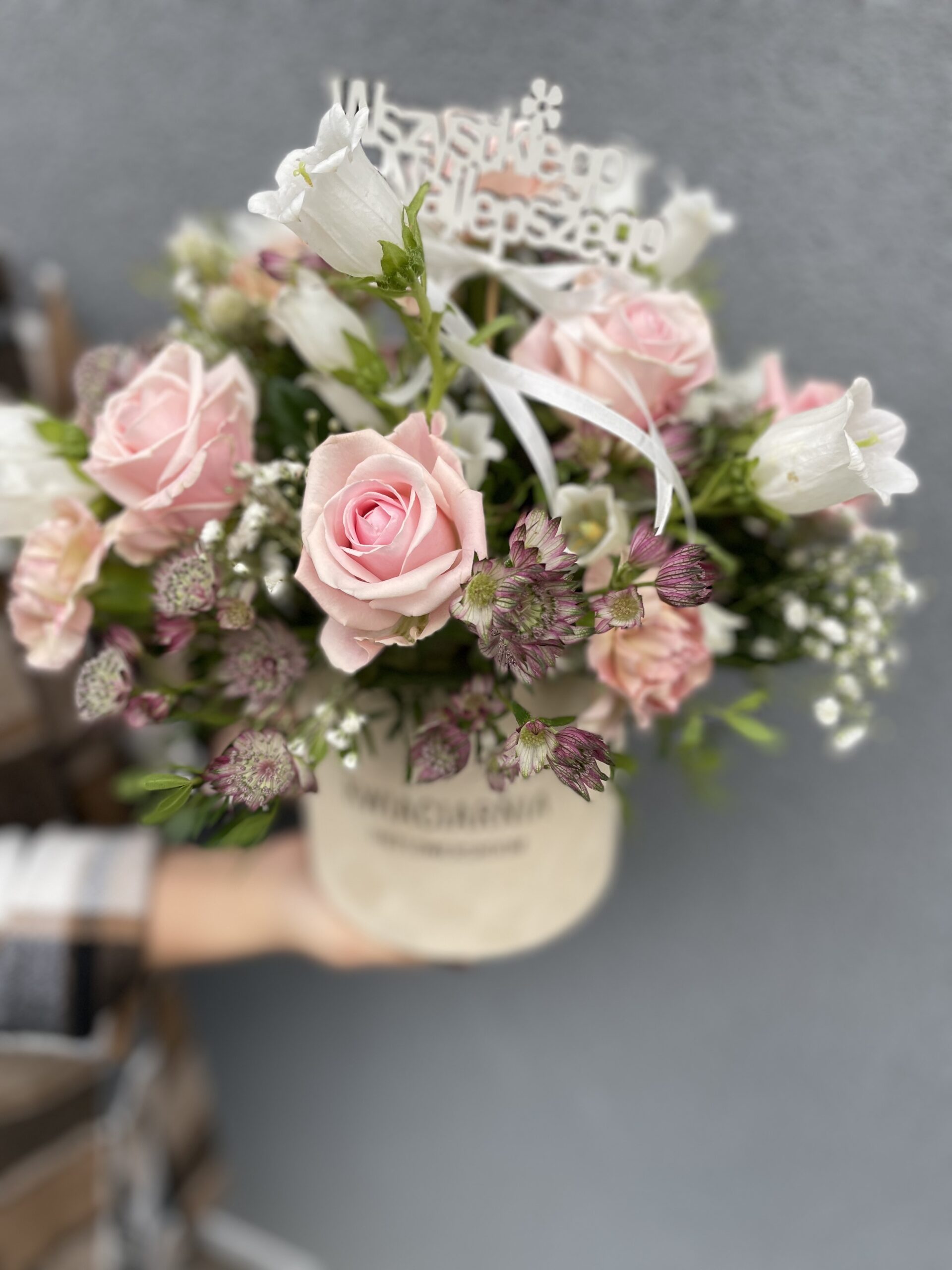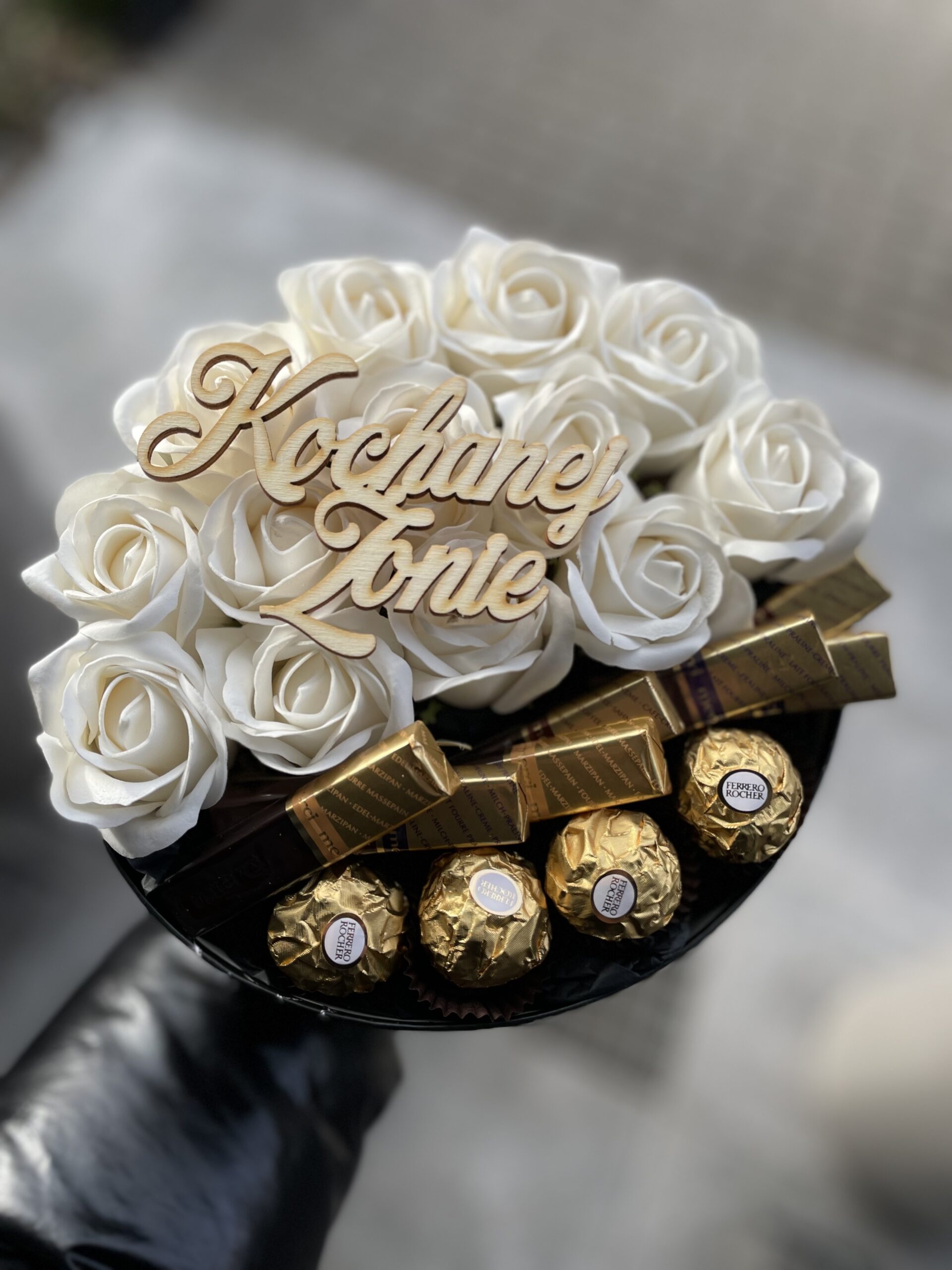 FLOWERBOXY Z KWIATÓW CIĘTYCH, RÓŻ WIECZNYCH I MYDLANYCH Z DODATKIEM SŁODKOŚCI